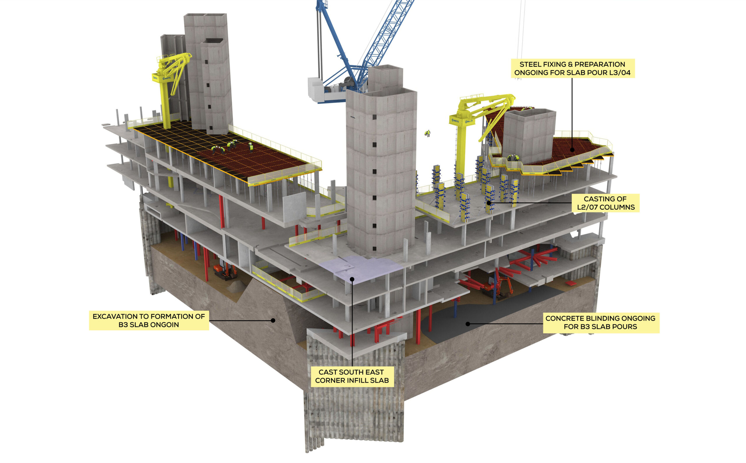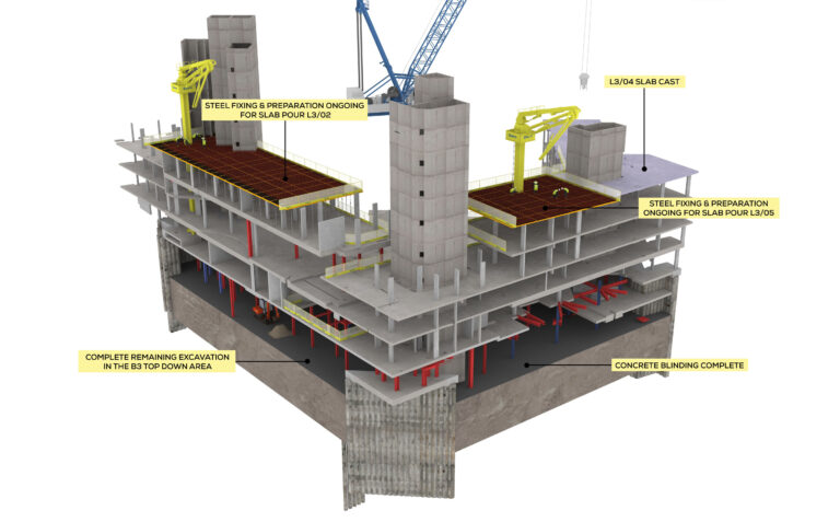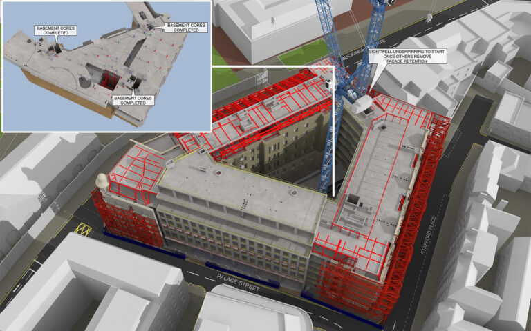 We supported the tender with detailed visuals explaining the complex works, including basement top-down construction, temporary works, and superstructure. These were key in securing a contract valued at £26 million.